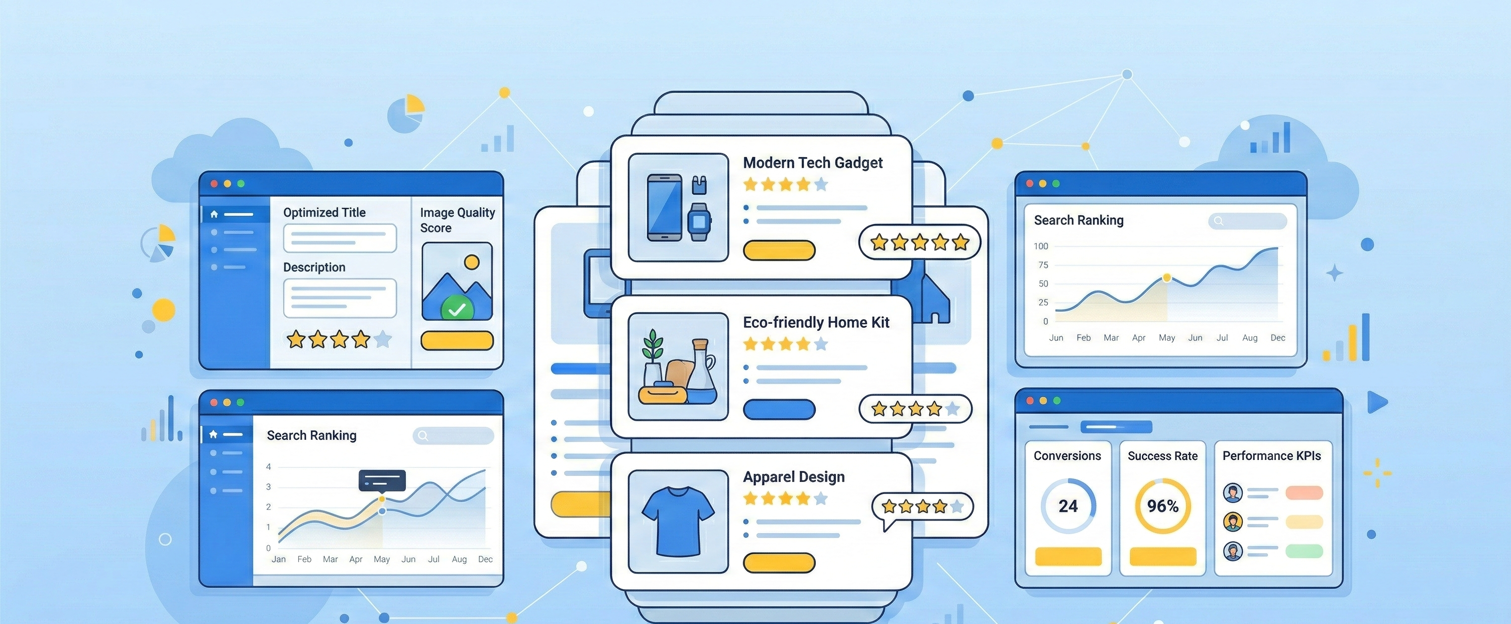 Our team improves listing quality, advertising efficiency, and operational workflows to maximize visibility, conversions, and sales performance.