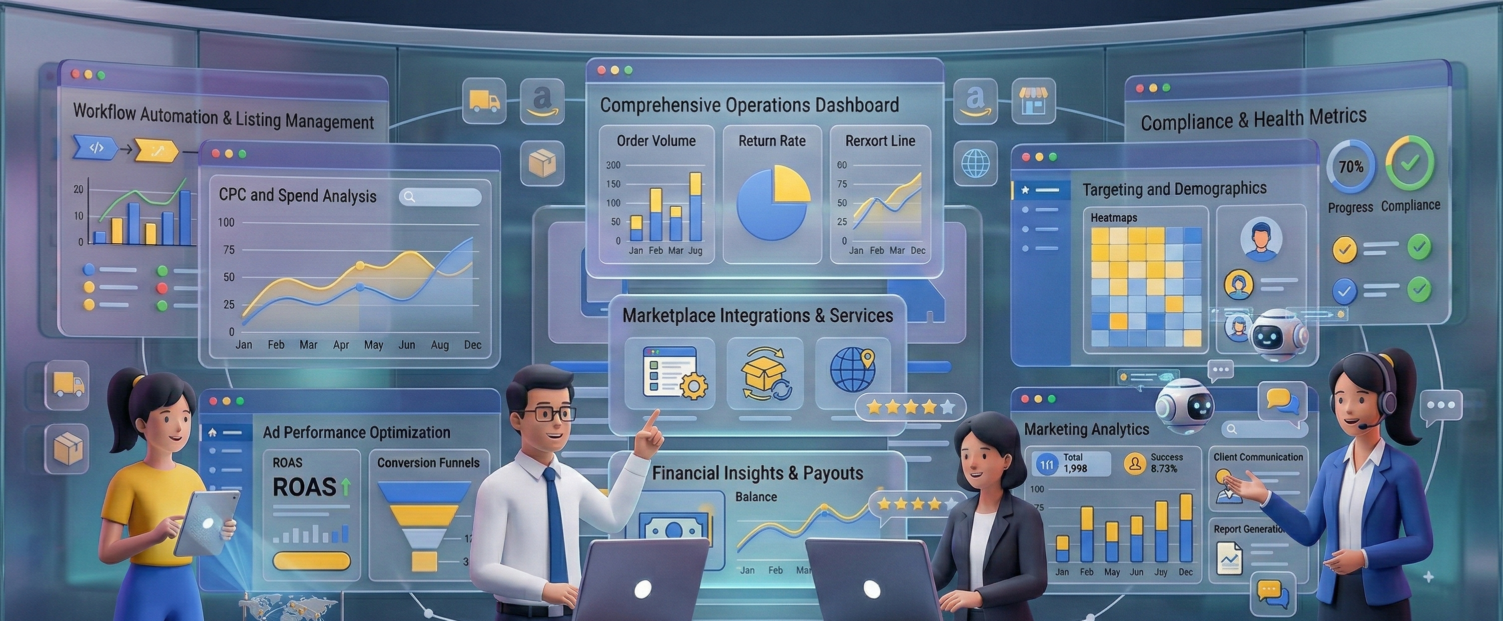 Our specialists manage Amazon, Shopify, and multi-marketplace operations with a strong focus on advertising performance, compliance, and scalable growth.